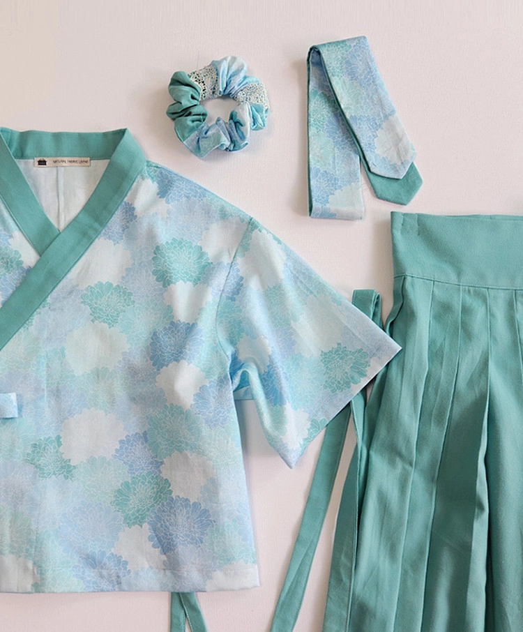 진하지 않은 파스텔 색감의 한국 전통 국화 문양 국화패턴 입니다.